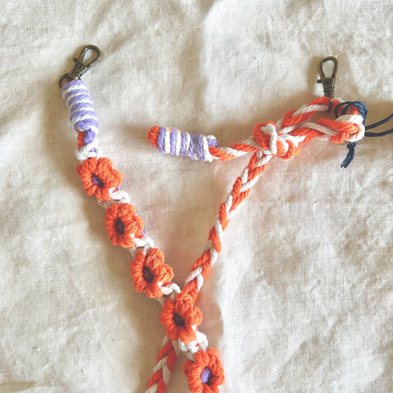 オレンジ×ラベンダー マクラメフラワー スマホショルダー