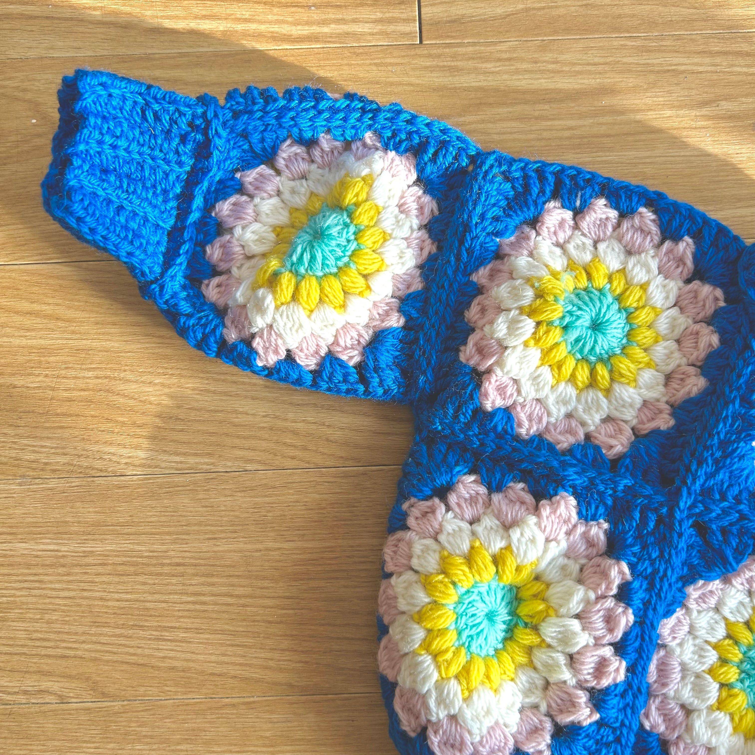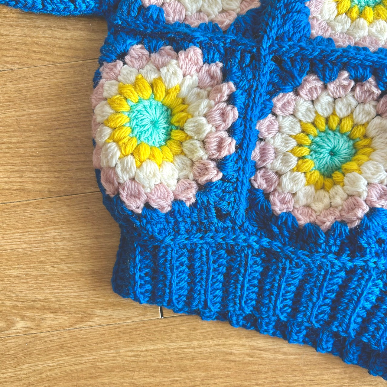 ブルーネイビーパレット エナジーフラワーモチーフ編みベビーセーター