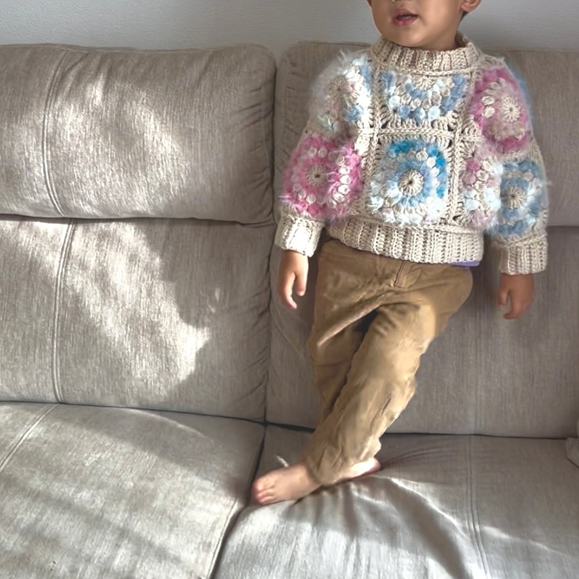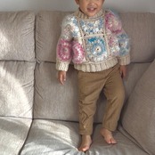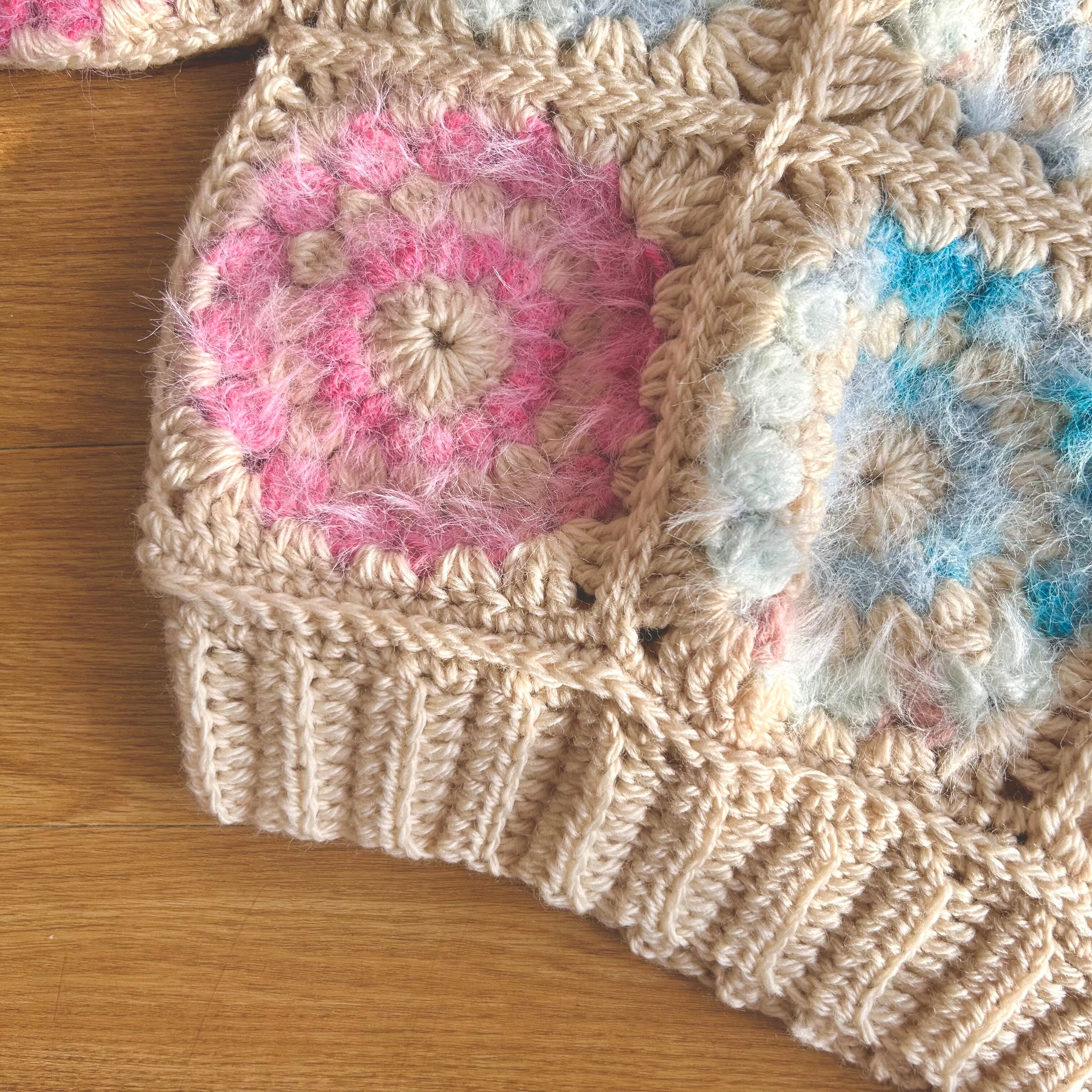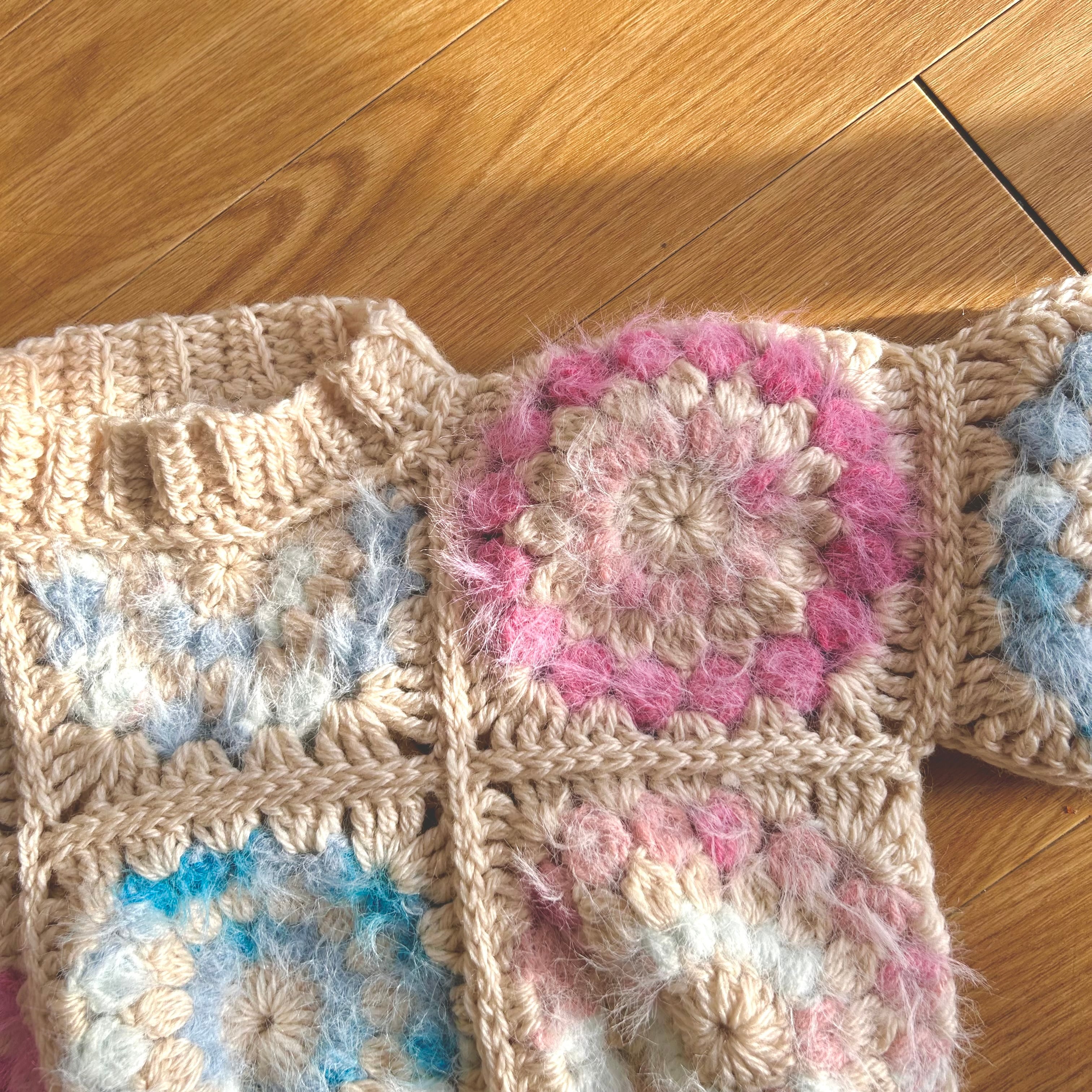 スノーレジャーグラデーションパレット エナジーフラワーモチーフ編みベビーセーター