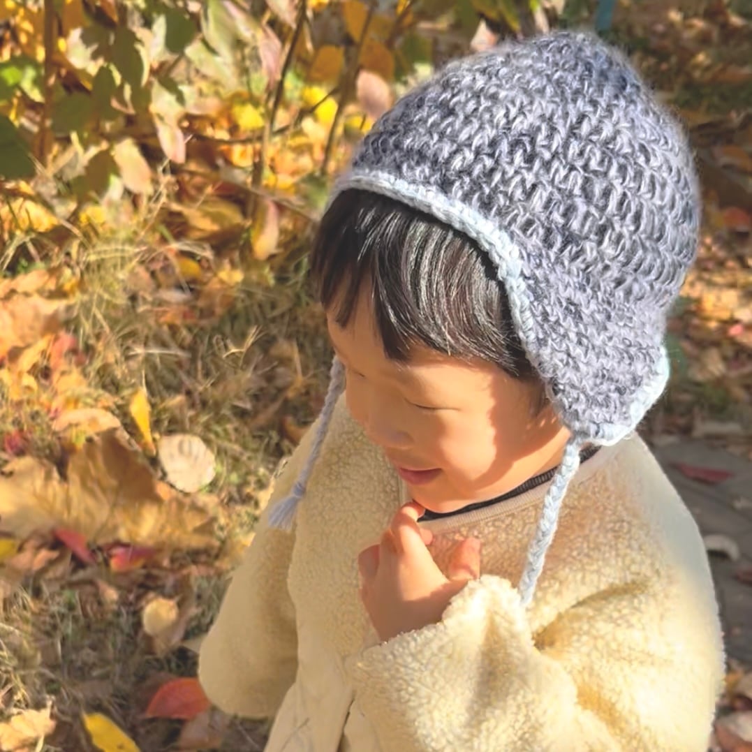 マーブルネイビー 1y〜2y 耳あてニット帽