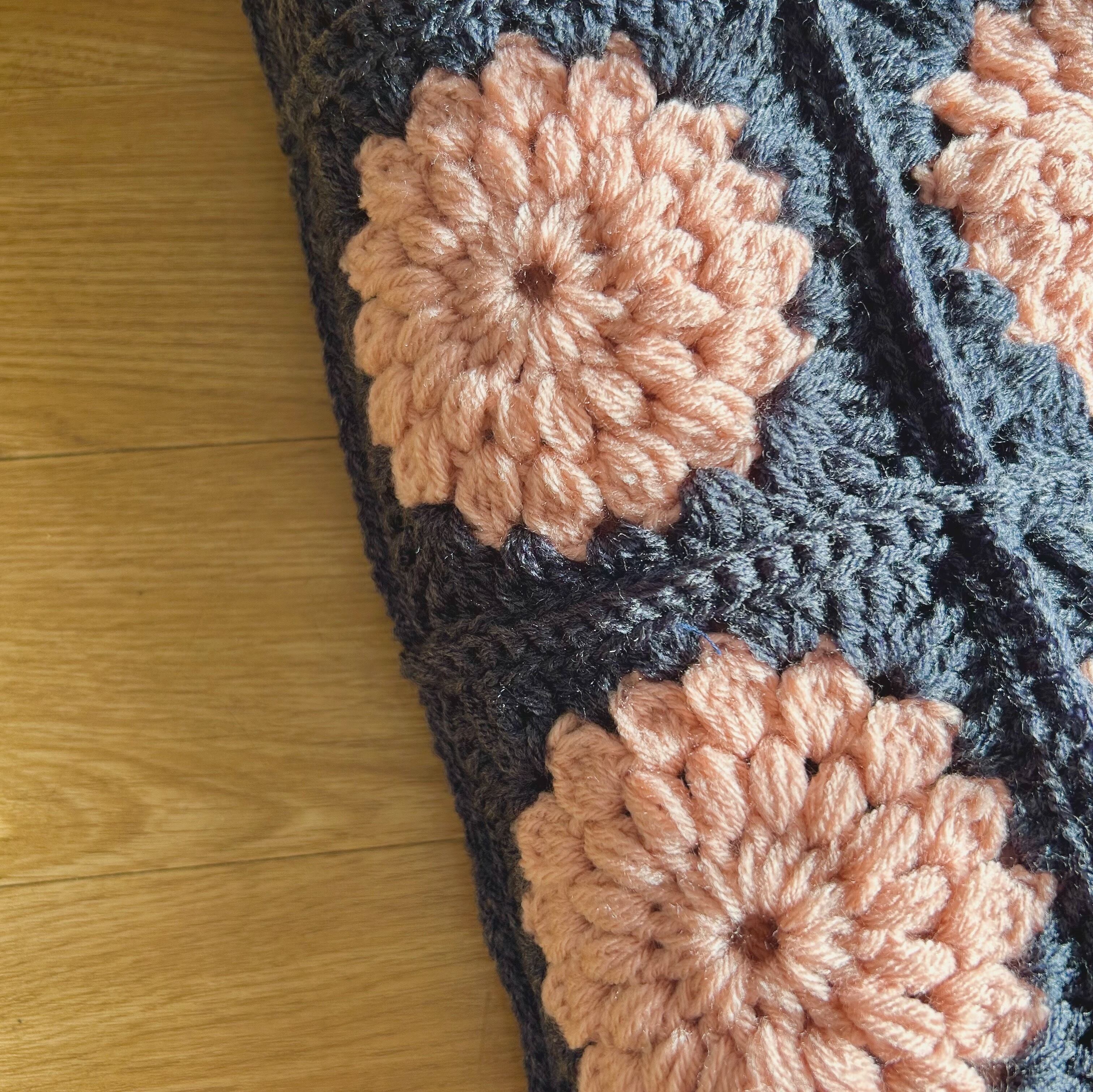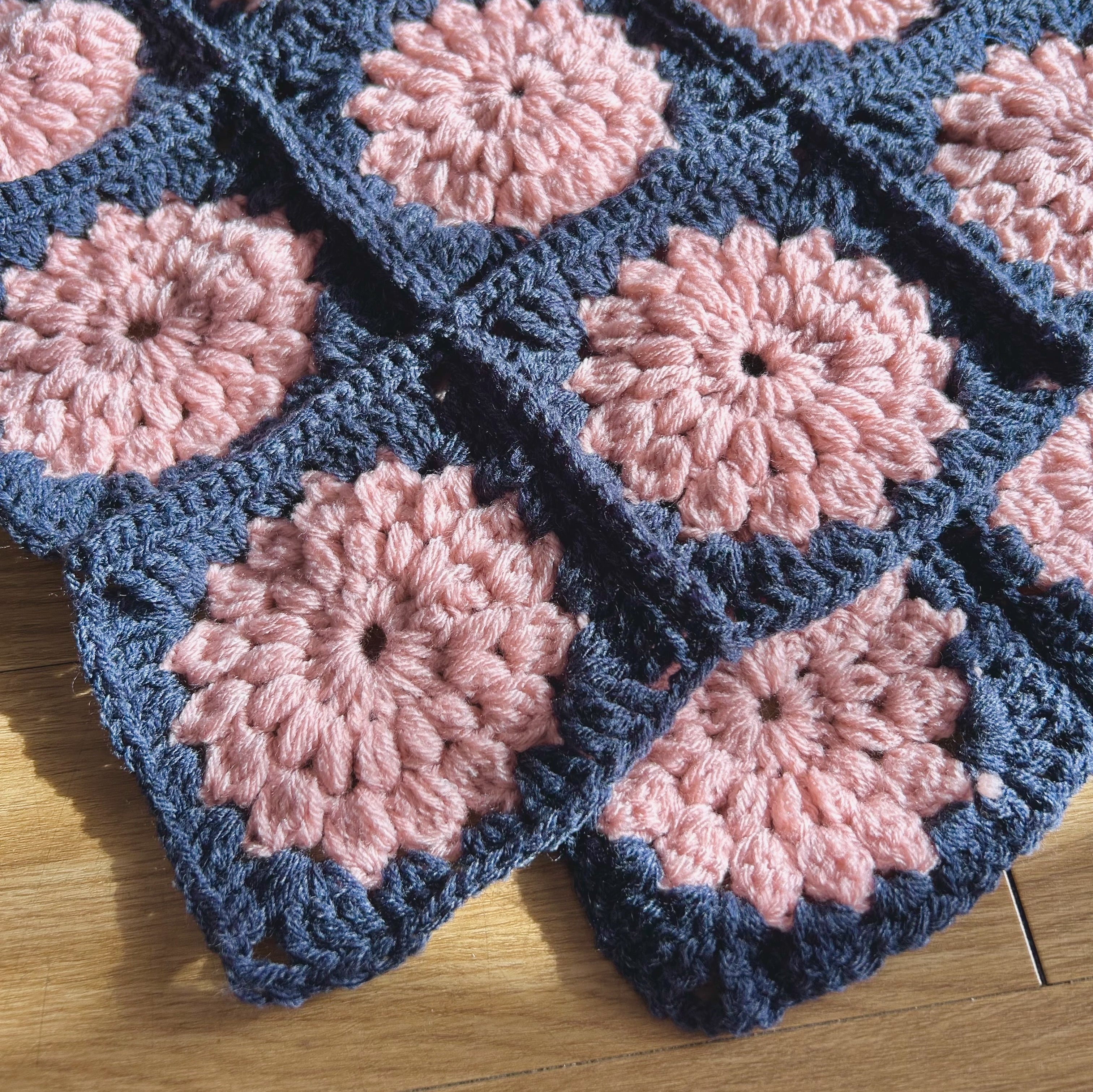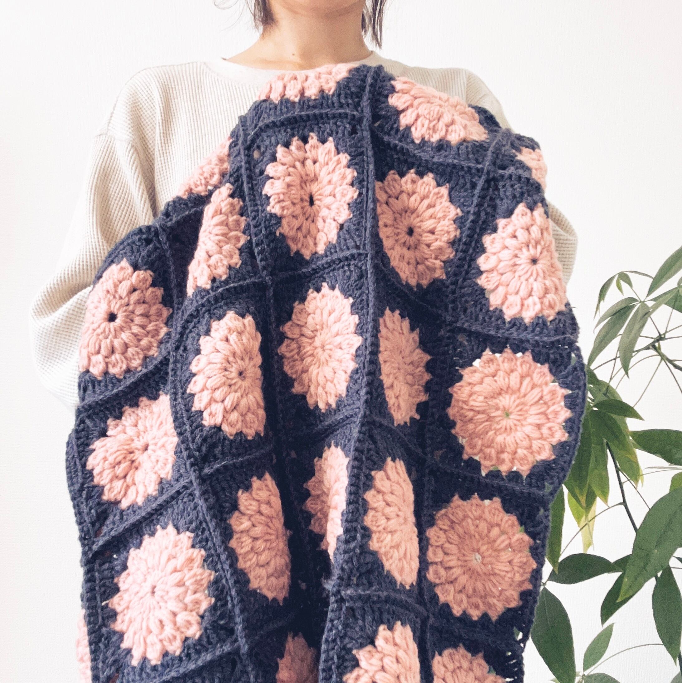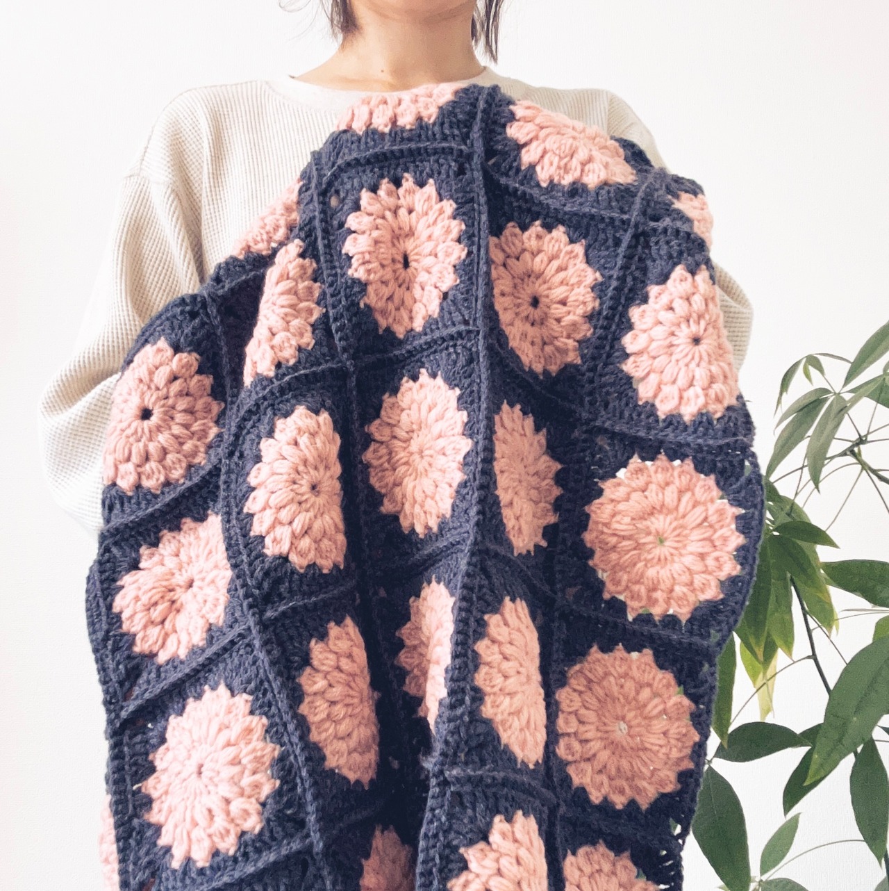 可愛くないわけがない色の組み合わせで、ブランケットを編み上げました。