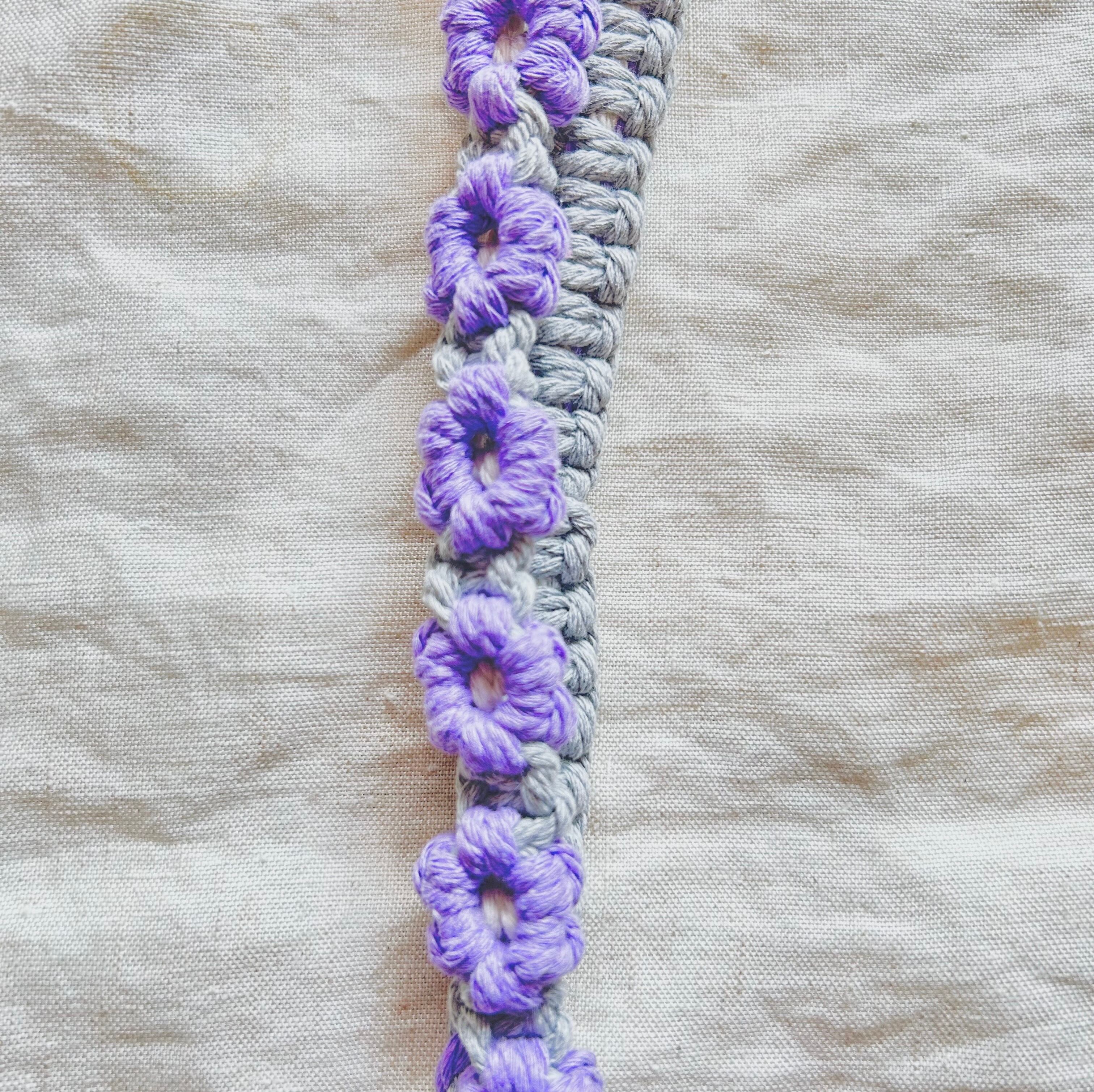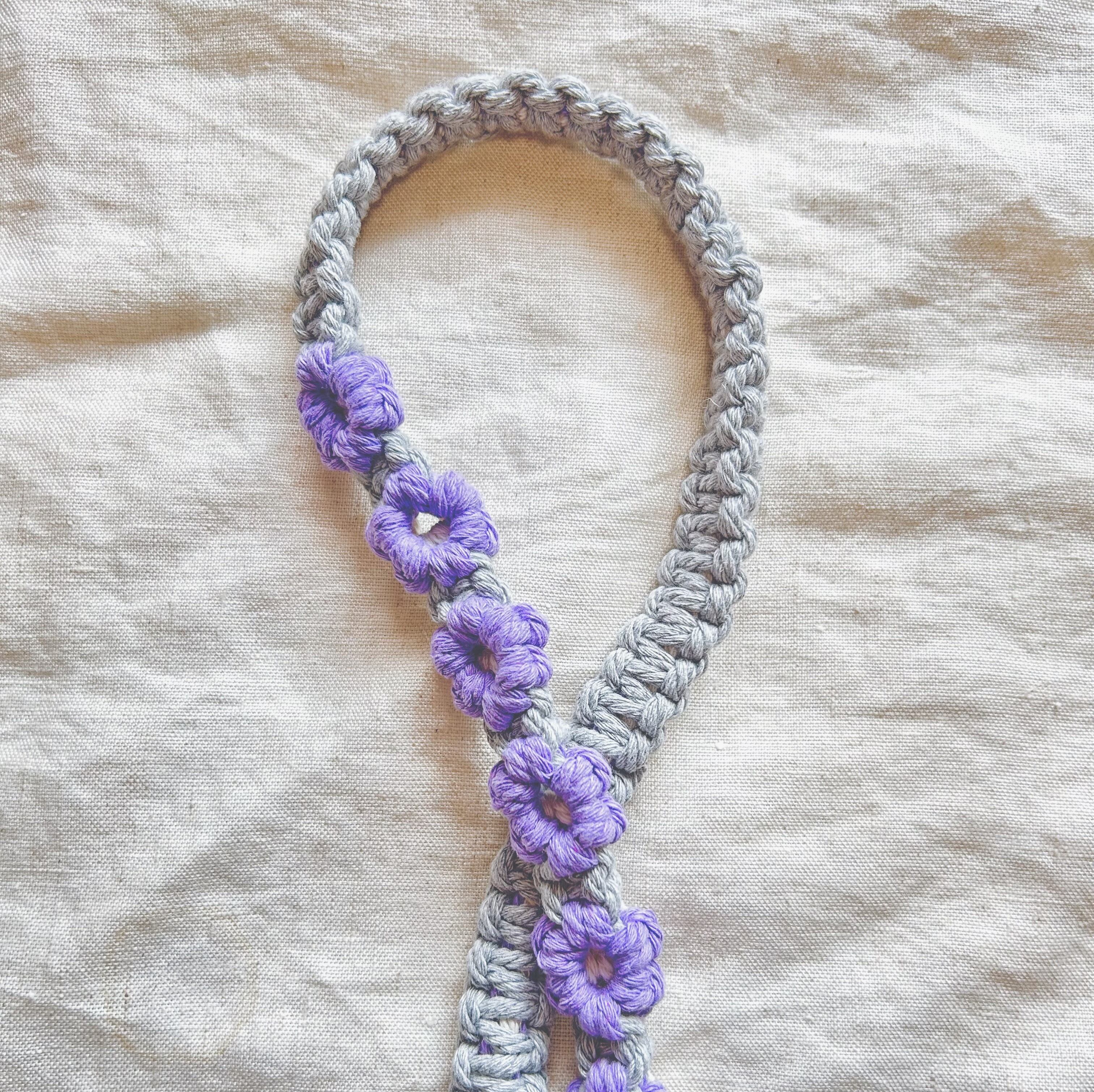 ラベンダー×グレー マクラメフラワー スマホショルダー