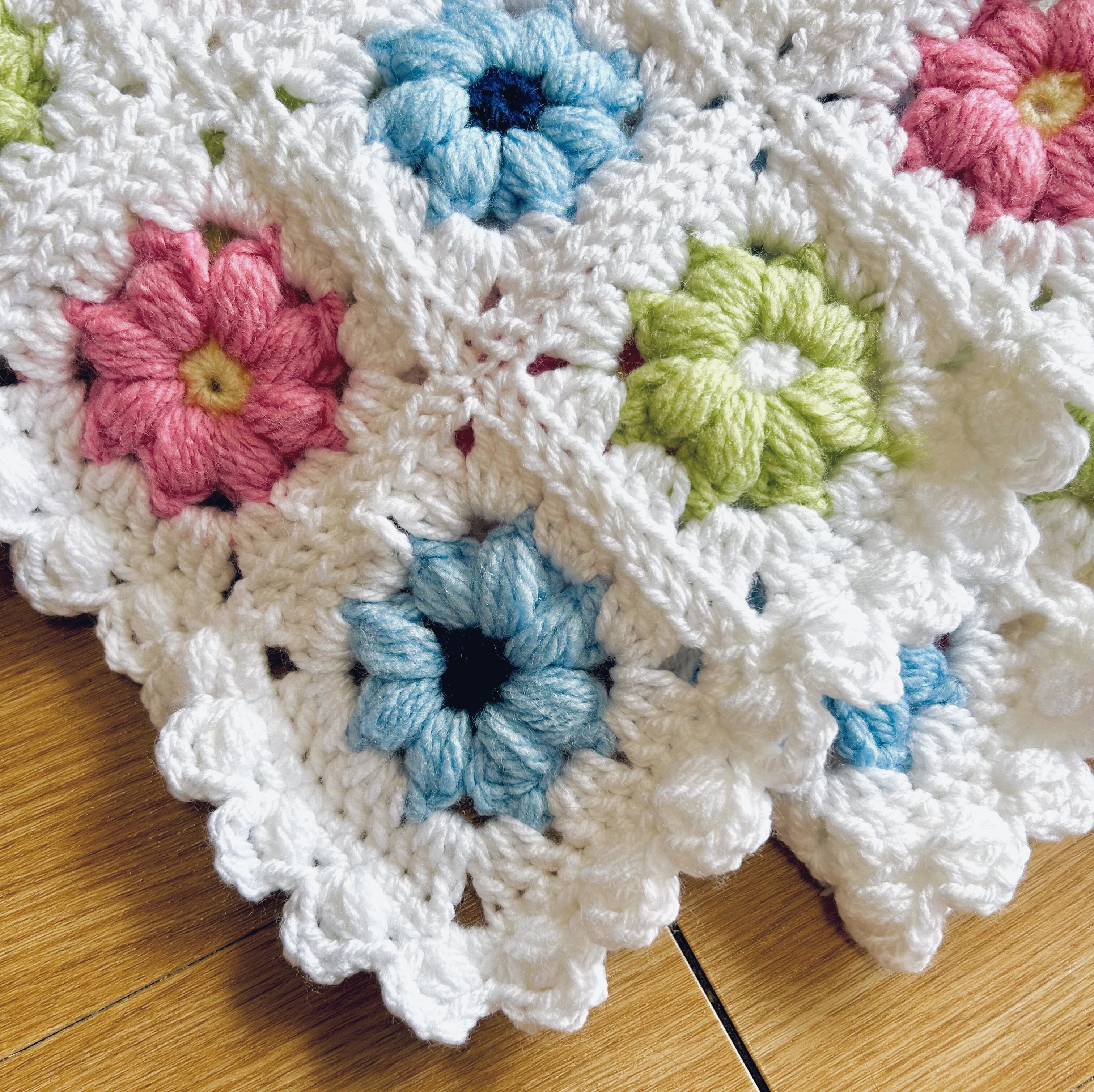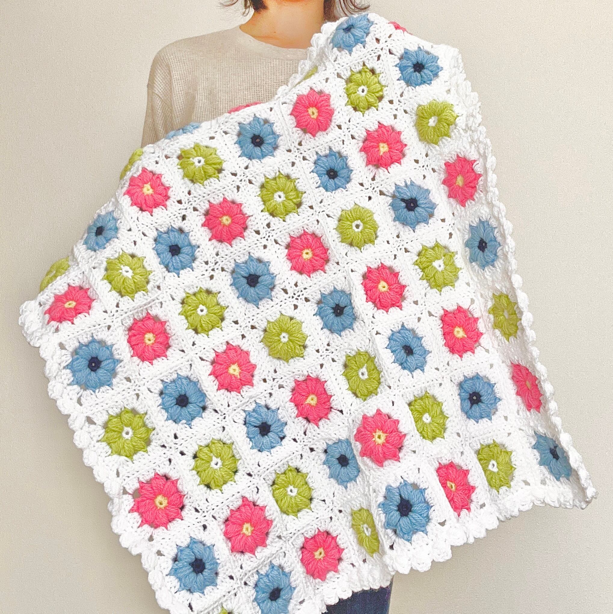 パレットホワイト モチーフ編みベビーフラワーブランケット
