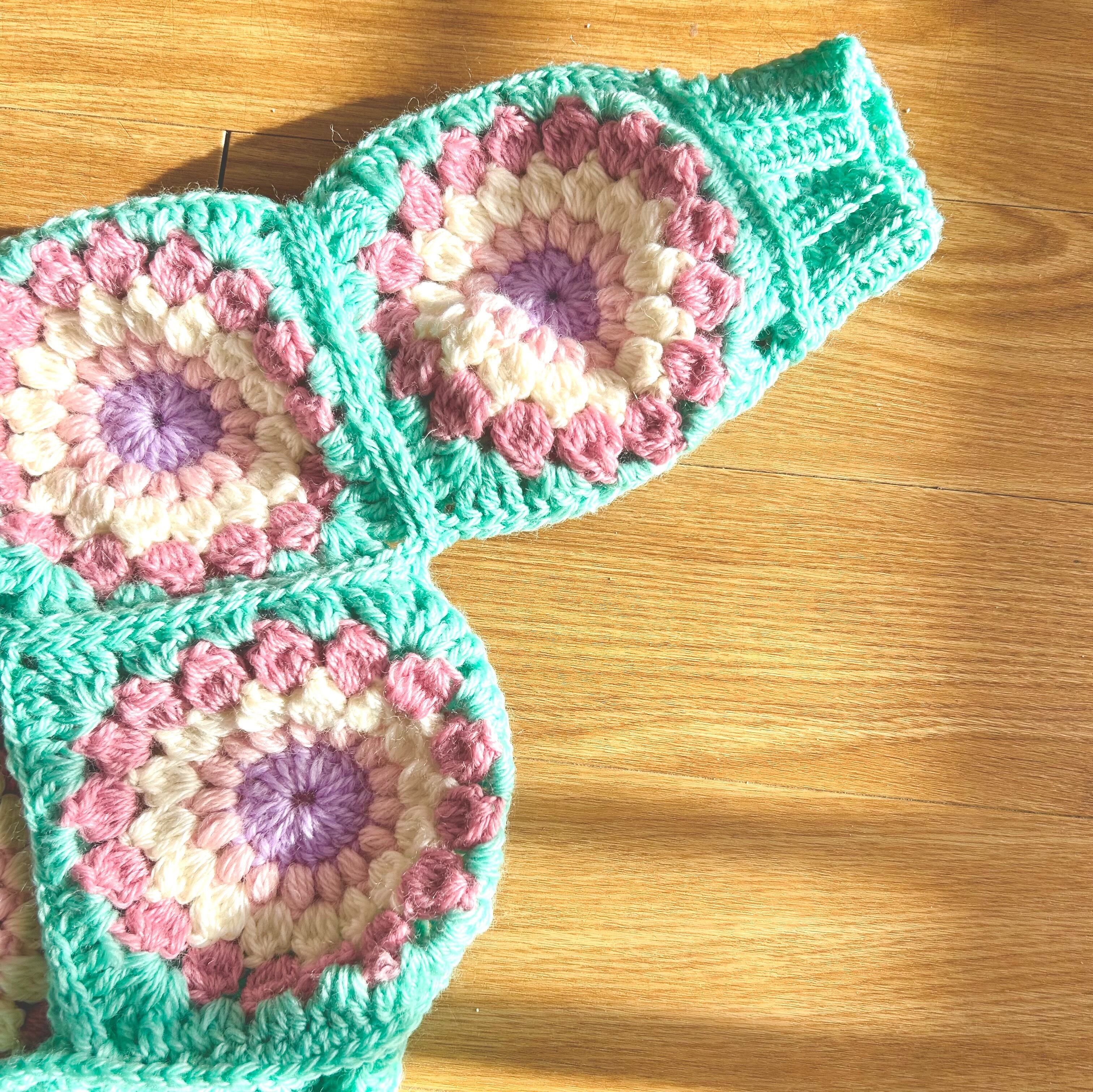 ミントパレット エナジーフラワーモチーフ編みベビーセーター