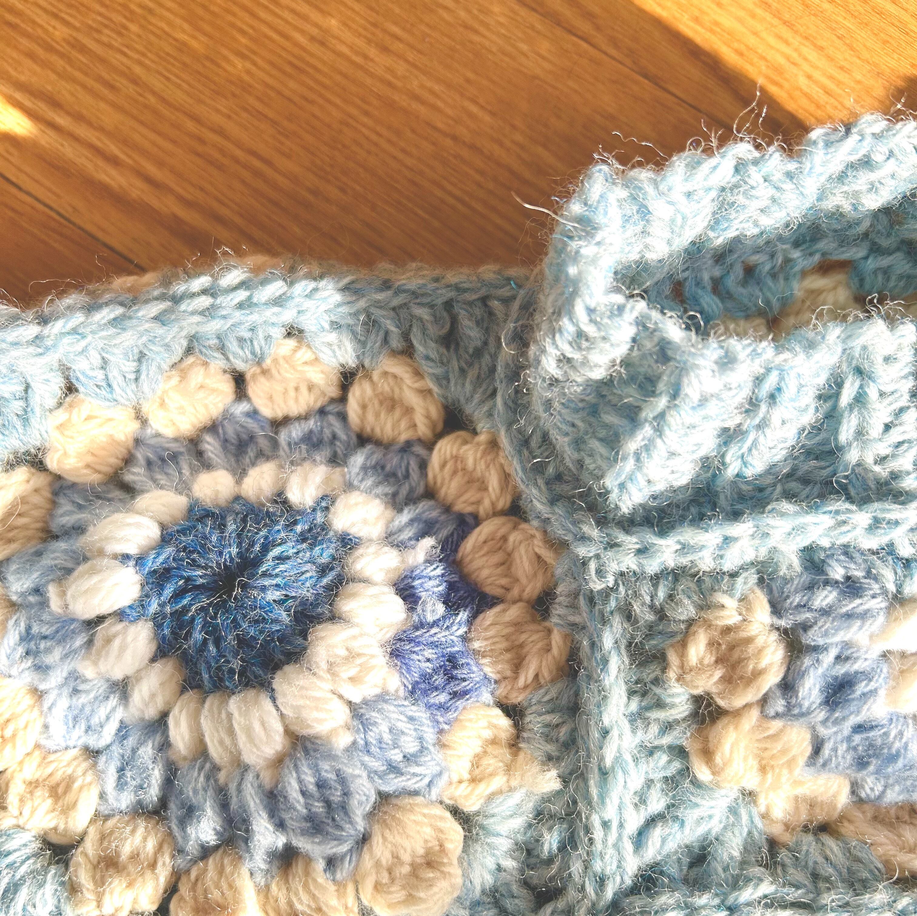 青のグラデーションで編んでみました。