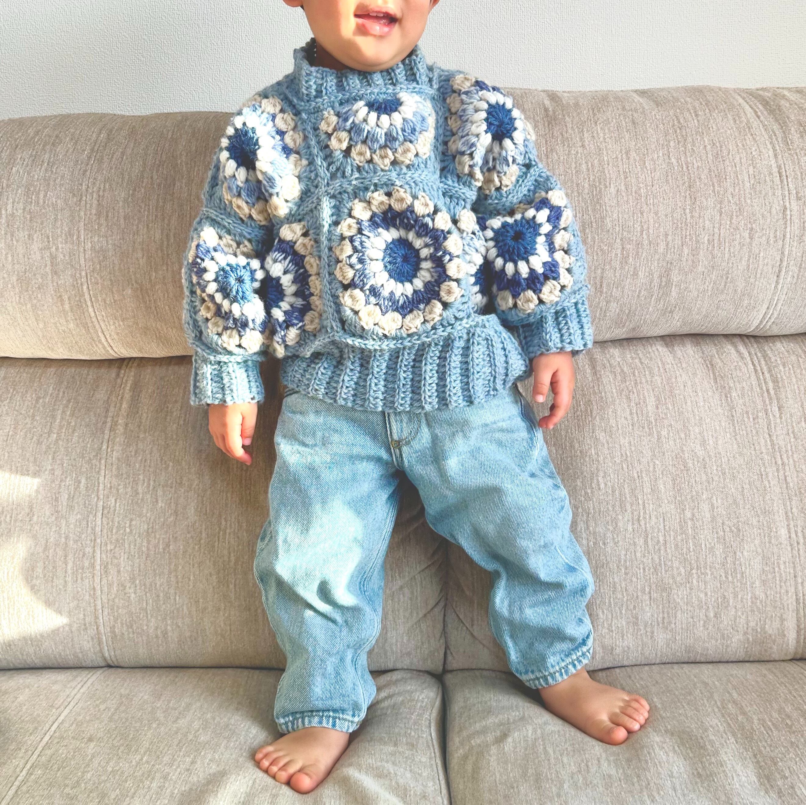ブルーパレット エナジーフラワーモチーフ編みベビーセーター