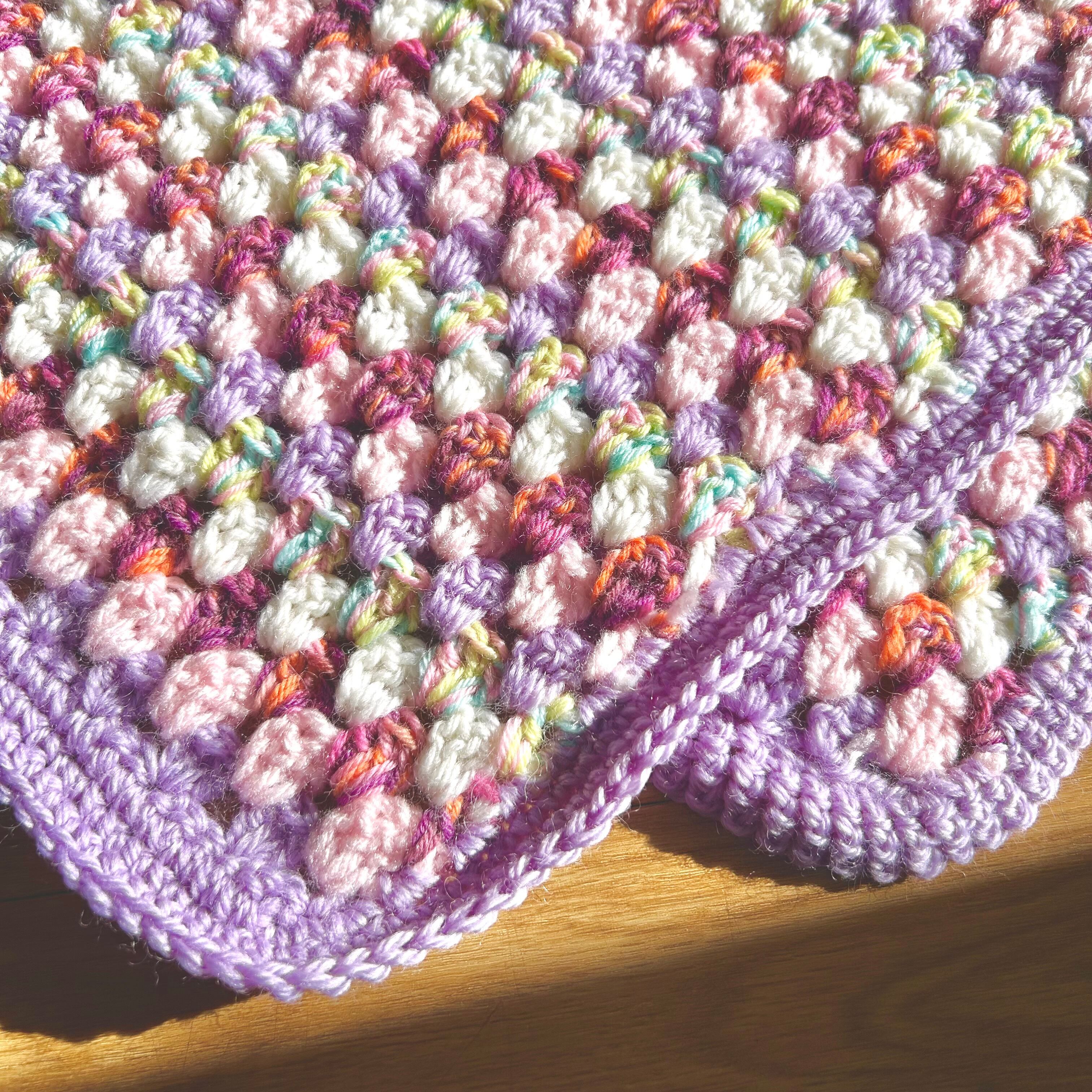 まるでたくさんのキャンディたちが元気に弾けたようなブランケットになりました。